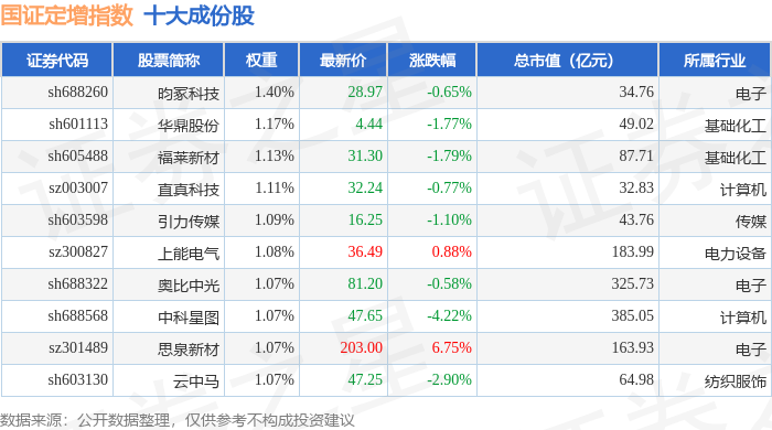证券之星消息,12月23日,国证定增(399428)指数报收于4111.76点,跌0.51%,成交663.22亿元,换手率3.8%。当日该指数成份股中,上涨的有30家,宏和科技以10.01%的涨幅领涨,下跌的有70家,上海瀚讯以10.4%的跌幅领跌。