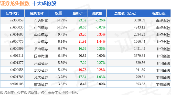 证券龙头(399437)指数十大成份股详情如下: