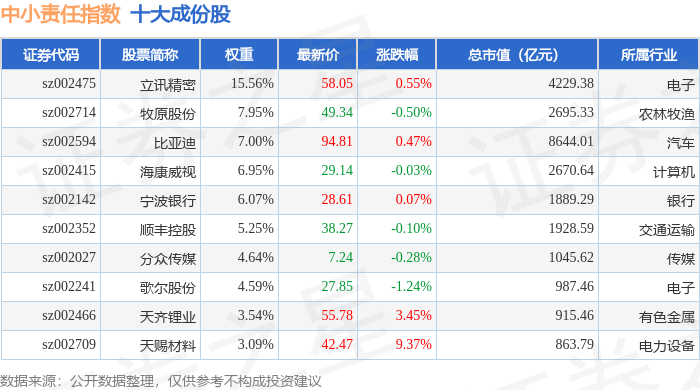 中小责任(399651)指数十大成份股详情如下: