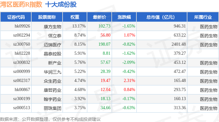 资金流向方面,湾区医药R(480013)指数成份股当日主力资金净流出合计823.62万元,游资资金净流出合计2157.76万元,散户资金净流入合计2981.38万元。成份股资金流向详情见下表: