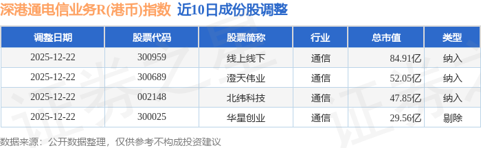 近10日内深港通电信业务R(港币)(483030)指数成份股做了调整,新纳入了3只股票,剔除了1只股票。