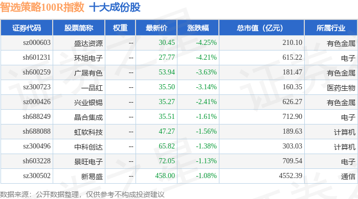智选策略100R(489015)指数十大成份股详情如下: