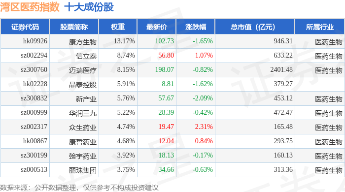 资金流向方面,湾区医药(980013)指数成份股当日主力资金净流出合计823.62万元,游资资金净流出合计2157.76万元,散户资金净流入合计2981.38万元。成份股资金流向详情见下表: