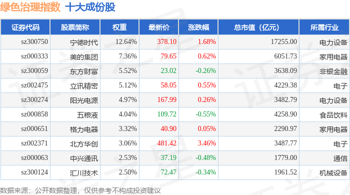 近10日内绿色治理(980058)指数成份股做了调整,新纳入了10只股票,剔除了10只股票。