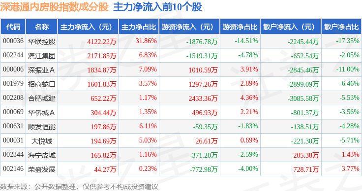 资金流向方面,深港通内房股(983083)指数成份股当日主力资金净流出合计4.5亿元,游资资金净流入合计1.39亿元,散户资金净流入合计3.11亿元。成份股资金流向详情见下表: