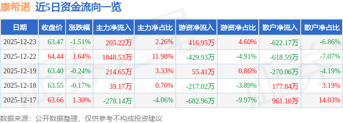 12月23日的资金流向数据方面,主力资金净流入205.22万元,占总成交额2.26%,游资资金净流入416.95万元,占总成交额4.6%,散户资金净流出622.17万元,占总成交额6.86%。