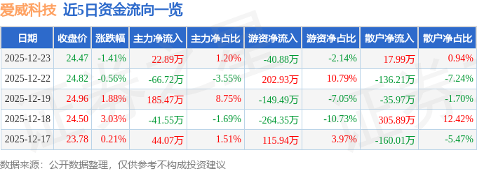 12月23日的资金流向数据方面,主力资金净流入22.89万元,占总成交额1.2%,游资资金净流出40.88万元,占总成交额2.14%,散户资金净流入17.99万元,占总成交额0.94%。