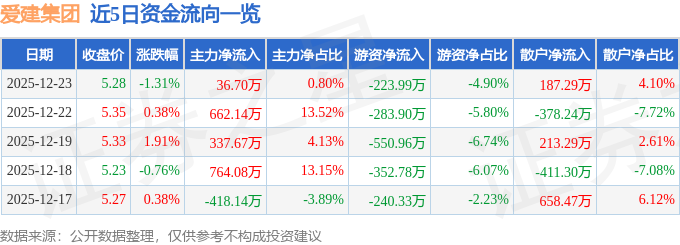 证券之星消息,截至2025年12月23日收盘,爱建集团(600643)报收于5.28元,下跌1.31%,换手率0.54%,成交量8.6万手,成交额4572.96万元。