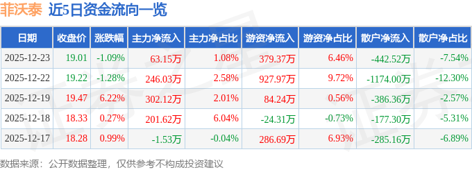 证券之星消息,截至2025年12月23日收盘,菲沃泰(688371)报收于19.01元,下跌1.09%,换手率0.92%,成交量3.08万手,成交额5872.12万元。