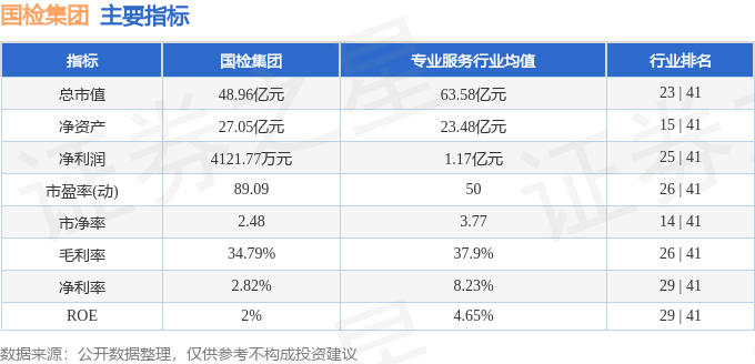 国检集团2025年三季报显示,前三季度公司主营收入17.11亿元,同比上升3.57%;归母净利润4121.77万元,同比下降42.17%;扣非净利润1476.09万元,同比下降70.33%;其中2025年第三季度,公司单季度主营收入6.56亿元,同比上升7.42%;单季度归母净利润3540.56万元,同比下降21.21%;单季度扣非净利润3173.48万元,同比下降11.5%;负债率53.26%,投资收益89.87万元,财务费用3505.58万元,毛利率34.79%。国检集团(603060)主营业务:检验检测、认证、检测仪器及智能制造、计量校准、科研及技术服务。