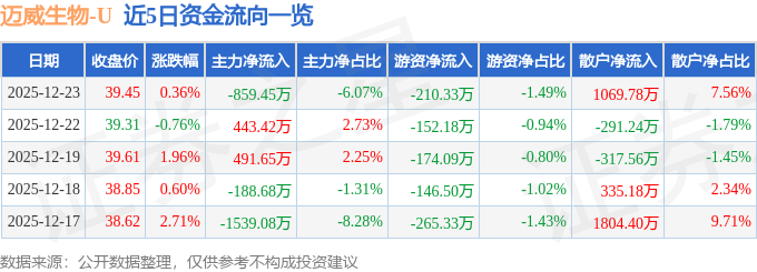 证券之星消息,截至2025年12月23日收盘,迈威生物(688062)报收于39.45元,上涨0.36%,换手率1.76%,成交量3.58万手,成交额1.42亿元。