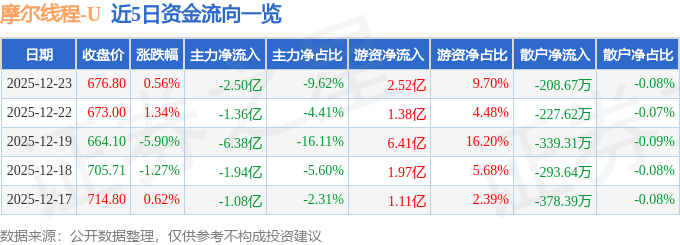 证券之星消息,截至2025年12月23日收盘,摩尔线程(688795)报收于676.8元,上涨0.56%,换手率13.19%,成交量3.87万手,成交额26.0亿元。