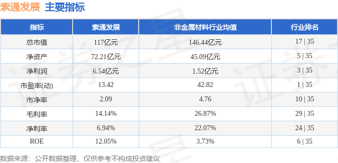 该股主要指标及行业内排名如下: