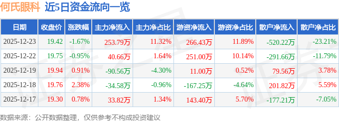 证券之星消息,截至2025年12月23日收盘,何氏眼科(301103)报收于19.42元,下跌1.67%,换手率0.73%,成交量1.15万手,成交额2241.43万元。