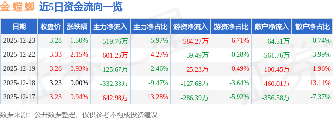 证券之星消息,截至2025年12月23日收盘,金 螳 螂(002081)报收于3.28元,下跌1.5%,换手率1.0%,成交量26.45万手,成交额8708.02万元。