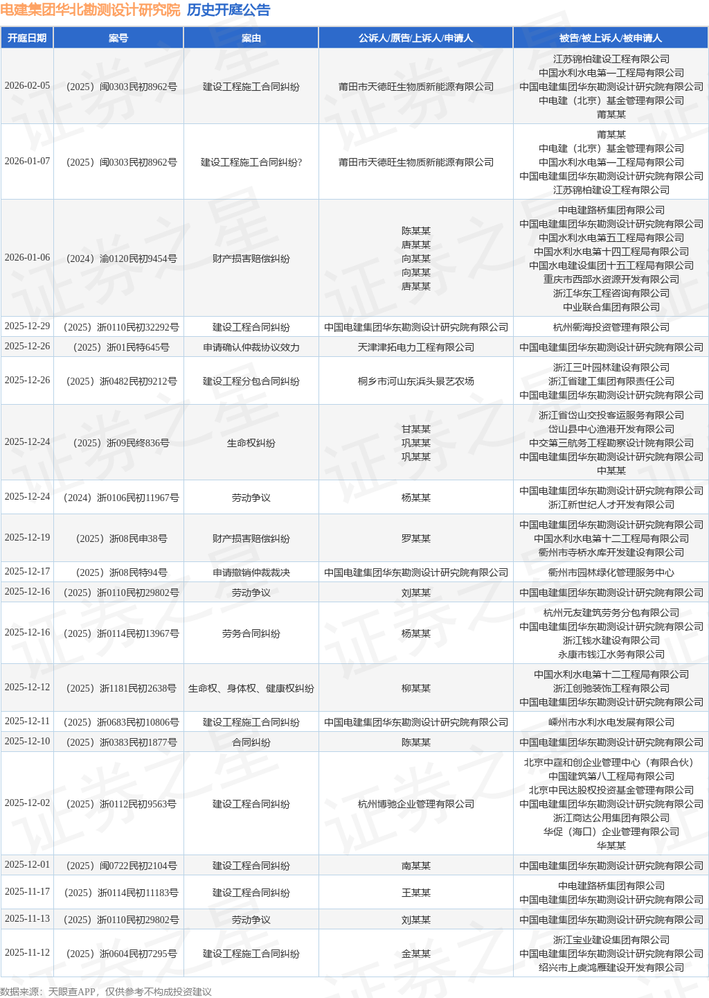 证券之星消息,根据天眼查APP显示,近日公布了一则中国电建集团华东勘测设计研究院有限公司作为被告/被上诉人的开庭公告,详细内容如下: