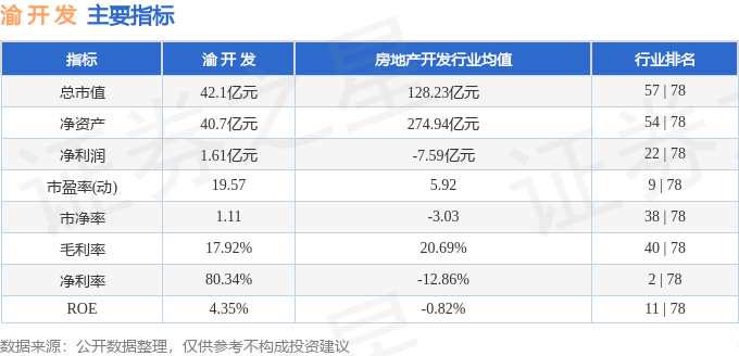 该股主要指标及行业内排名如下: