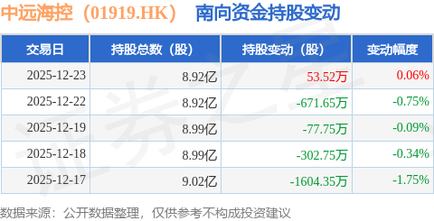 证券之星消息,12月23日南向资金增持53.52万股中远海控(01919.HK)。近5个交易日中,获南向资金减持的有4天,累计净减持2602.99万股。近20个交易日中,获南向资金减持的有10天,累计净减持4998.9万股。截至目前,南向资金持有中远海控(01919.HK)8.92亿股,占公司已发行普通股的30.98%。