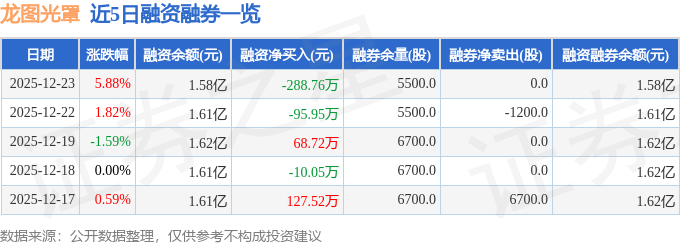 龙图光罩融资融券信息显示,融资方面,当日融资买入1360.59万元,融资偿还1649.35万元,融资净偿还288.76万元。融券方面,融券卖出0.0股,融券偿还0.0股,融券余量5500.0股,融券余额26.75万元。融资融券余额1.58亿元。