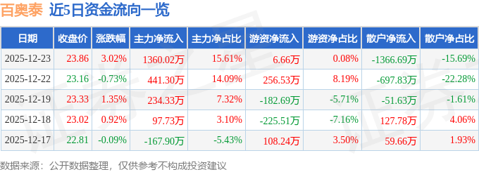 12月23日的资金流向数据方面,主力资金净流入1360.02万元,占总成交额15.61%,游资资金净流入6.66万元,占总成交额0.08%,散户资金净流出1366.69万元,占总成交额15.69%。