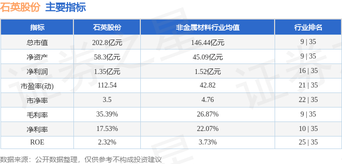该股主要指标及行业内排名如下: