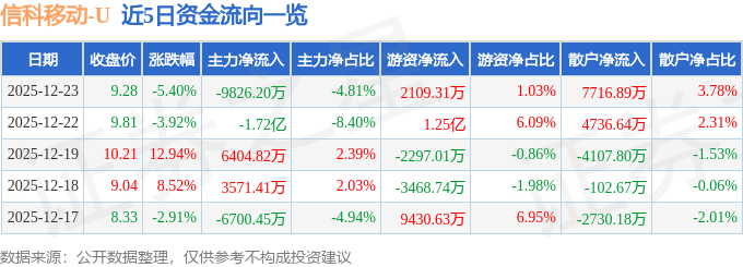 证券之星消息,截至2025年12月23日收盘,信科移动(688387)报收于9.28元,下跌5.4%,换手率10.44%,成交量210.57万手,成交额20.42亿元。