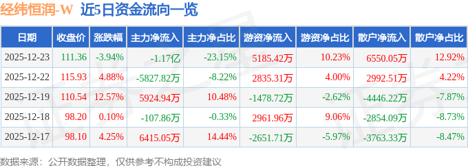 12月23日的资金流向数据方面,主力资金净流出1.17亿元,占总成交额23.15%,游资资金净流入5185.42万元,占总成交额10.23%,散户资金净流入6550.05万元,占总成交额12.92%。