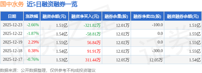 证券之星消息,截至2025年12月23日收盘,国中水务(600187)报收于2.56元,下跌2.66%,换手率1.64%,成交量26.44万手,成交额6850.59万元。