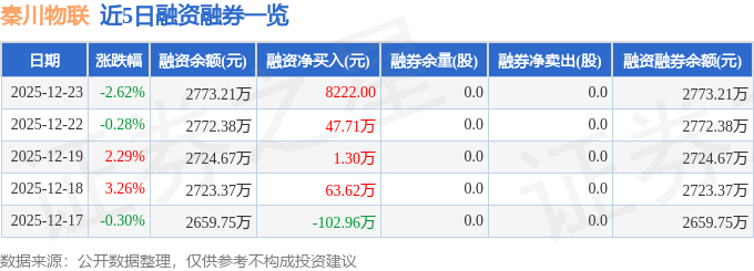 秦川物联融资融券信息显示,融资方面,当日融资买入107.1万元,融资偿还106.28万元,融资净买入0.82万元,连续3日净买入累计49.84万元。融券方面,融券卖出0.0股,融券偿还0.0股,融券余量0.0股,融券余额0.0万元。融资融券余额2773.21万元。