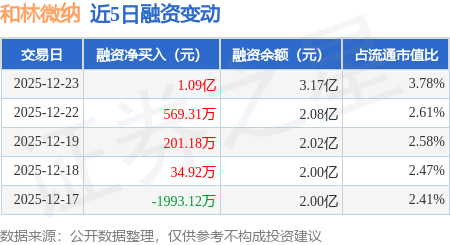 证券之星消息,12月23日,和林微纳(688661)融资买入1.73亿元,融资偿还6372.0万元,融资净买入1.09亿元,融资余额3.17亿元,当日融资净买入排名第33,近3个交易日已连续净买入累计1.17亿元。