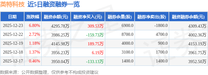 证券之星消息,截至2025年12月23日收盘,英特科技(301399)报收于19.78元,上涨6.8%,换手率21.98%,成交量12.02万手,成交额2.43亿元。