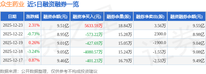 证券之星消息,截至2025年12月23日收盘,众生药业(002317)报收于19.47元,上涨2.31%,换手率10.59%,成交量80.66万手,成交额15.53亿元。