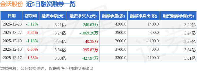 证券之星消息,截至2025年12月23日收盘,金沃股份(300984)报收于66.17元,下跌3.12%,换手率3.66%,成交量2.84万手,成交额1.89亿元。