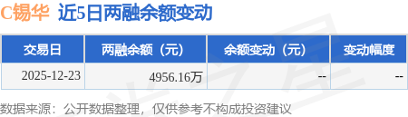 证券之星消息,12月23日,C锡华(603248)融资买入5252.49万元,融资偿还296.33万元,融资净买入4956.16万元,融资余额4956.16万元。