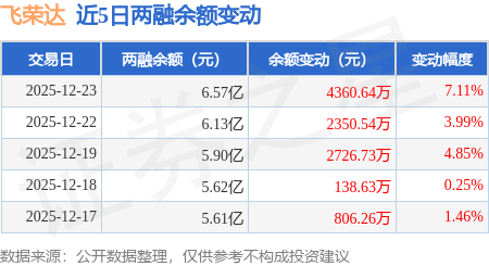 证券之星消息,12月23日,飞荣达(300602)融资买入1.77亿元,融资偿还1.34亿元,融资净买入4336.48万元,融资余额6.55亿元,近3个交易日已连续净买入累计9421.37万元。