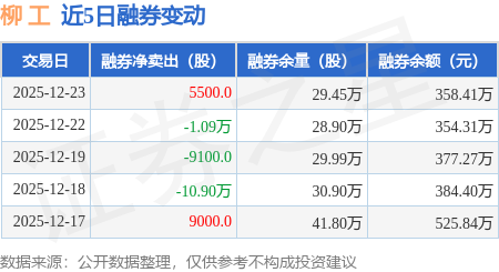 证券之星消息,12月23日,柳 工(000528)融资买入2567.97万元,融资偿还1161.44万元,融资净买入1406.52万元,融资余额5.05亿元。