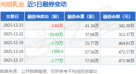 证券之星消息,12月23日,光明乳业(600597)融资买入2583.85万元,融资偿还1520.76万元,融资净买入1063.1万元,融资余额3.57亿元。