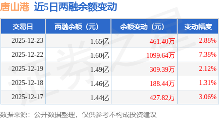 证券之星消息,12月23日,唐山港(601000)融资买入1403.5万元,融资偿还938.12万元,融资净买入465.38万元,融资余额1.59亿元,近3个交易日已连续净买入累计1875.72万元,近20个交易日中有13个交易日出现融资净买入。