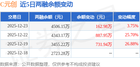 证券之星消息,12月23日,C元创(001325)融资买入3047.06万元,融资偿还2884.08万元,融资净买入162.98万元,融资余额4506.15万元,近3个交易日已连续净买入累计1782.88万元。