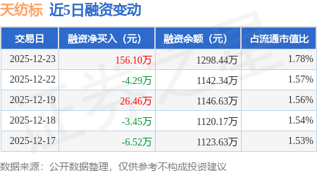 证券之星消息,12月23日,天纺标(920753)融资买入198.81万元,融资偿还42.71万元,融资净买入156.1万元,融资余额1298.44万元。