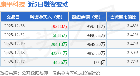 证券之星消息,12月23日,康平科技(300907)融资买入631.72万元,融资偿还528.93万元,融资净买入102.8万元,融资余额9593.14万元。