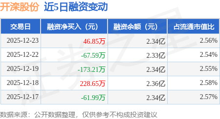 证券之星消息,12月23日,开滦股份(600997)融资买入254.25万元,融资偿还207.41万元,融资净买入46.85万元,融资余额2.34亿元,近20个交易日中有11个交易日出现融资净买入。