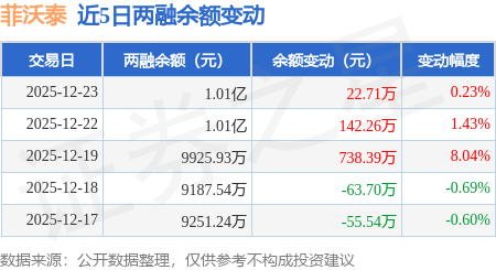 证券之星消息,12月23日,菲沃泰(688371)融资买入826.83万元,融资偿还803.83万元,融资净买入23.0万元,融资余额1.01亿元,近3个交易日已连续净买入累计877.31万元。