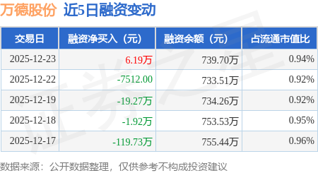 证券之星消息,12月23日,万德股份(920519)融资买入8.29万元,融资偿还2.1万元,融资净买入6.19万元,融资余额739.7万元。