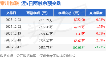 证券之星消息,12月23日,秦川物联(688528)融资买入107.1万元,融资偿还106.28万元,融资净买入0.82万元,融资余额2773.21万元,近3个交易日已连续净买入累计49.84万元。