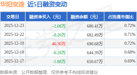 证券之星消息,12月23日,华阳变速(920146)融资买入26.47万元,融资偿还28.55万元,融资净卖出2.08万元,融资余额680.41万元,近20个交易日中有11个交易日出现融资净买入。
