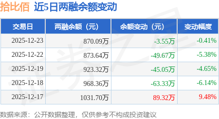 证券之星消息,12月23日,拾比佰(920768)融资买入17.27万元,融资偿还20.83万元,融资净卖出3.55万元,融资余额870.09万元,近20个交易日中有11个交易日出现融资净买入。