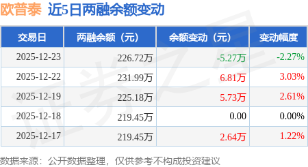 证券之星消息,12月23日,欧普泰(920414)融资买入1.52万元,融资偿还6.79万元,融资净卖出5.27万元,融资余额226.72万元。