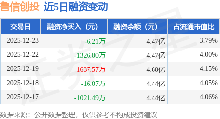 证券之星消息,12月23日,鲁信创投(600783)融资买入1.19亿元,融资偿还1.19亿元,融资净卖出6.21万元,融资余额4.47亿元。