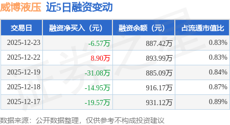 证券之星消息,12月23日,威博液压(920245)融资买入82.34万元,融资偿还88.92万元,融资净卖出6.57万元,融资余额887.42万元。